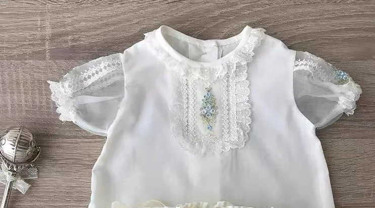 This charming white llittle jumpsuit with a pretty floral pattern and chiffon overlay create an adorably sweet look for your little ones. It is perfect for birthdays, baptismal, weddings, special occasions, or even everyday styling. It features a wand that your kids can pretend like a little fairy. It's also suitable in a theme party costume. It is made of lightweight materials. Let your kids look like a young fairy or angel that is sent from up above to spread cuteness.